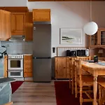 Santa´s Cottage & Pet Farmから徒歩でわずか12分に位置するAlpine Cottage By Aavaレヴィでは、ビジネスにもレジャーにもWiFiを利用することができます。 このアパートには、中庭の眺めを見渡せるテラスもあります。